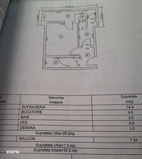 - Garsoniera decomandata 35mp, zona Viziru 1 Parter cu balcon