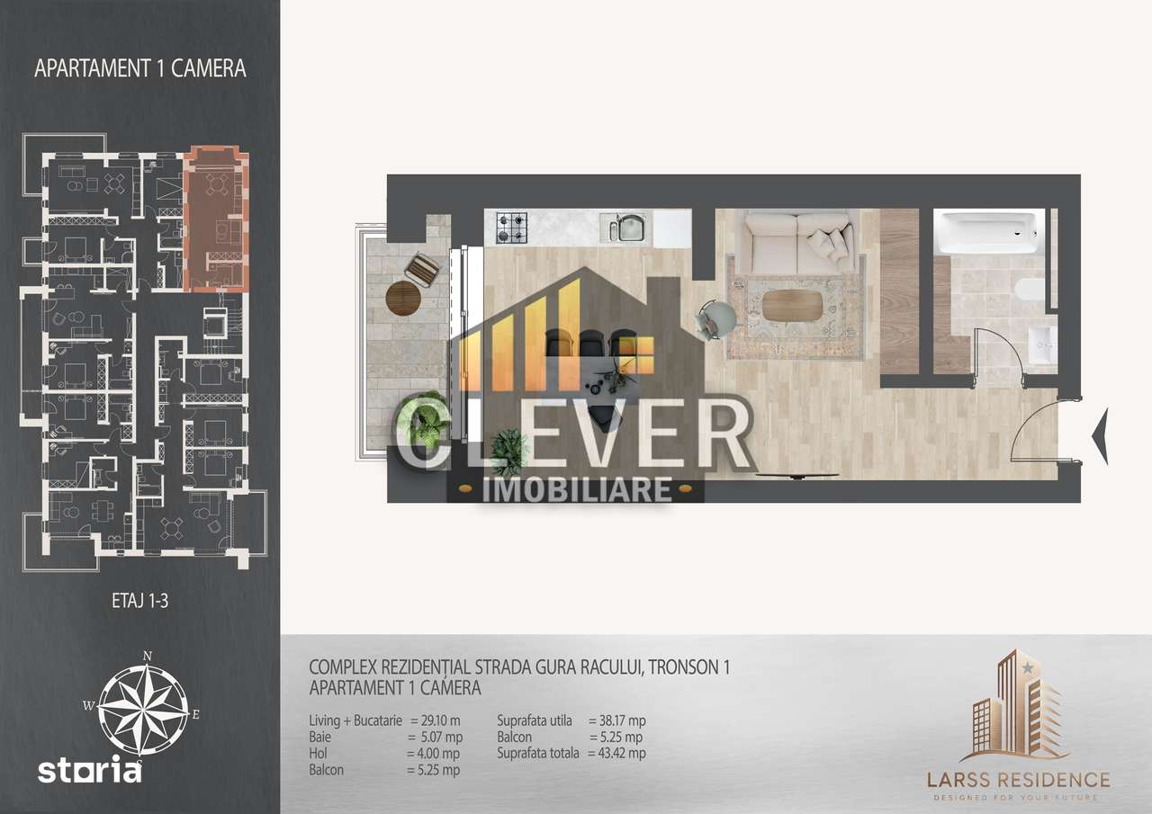 Studio 1 camera, Compartimentare Inteligenta, zona Pallady