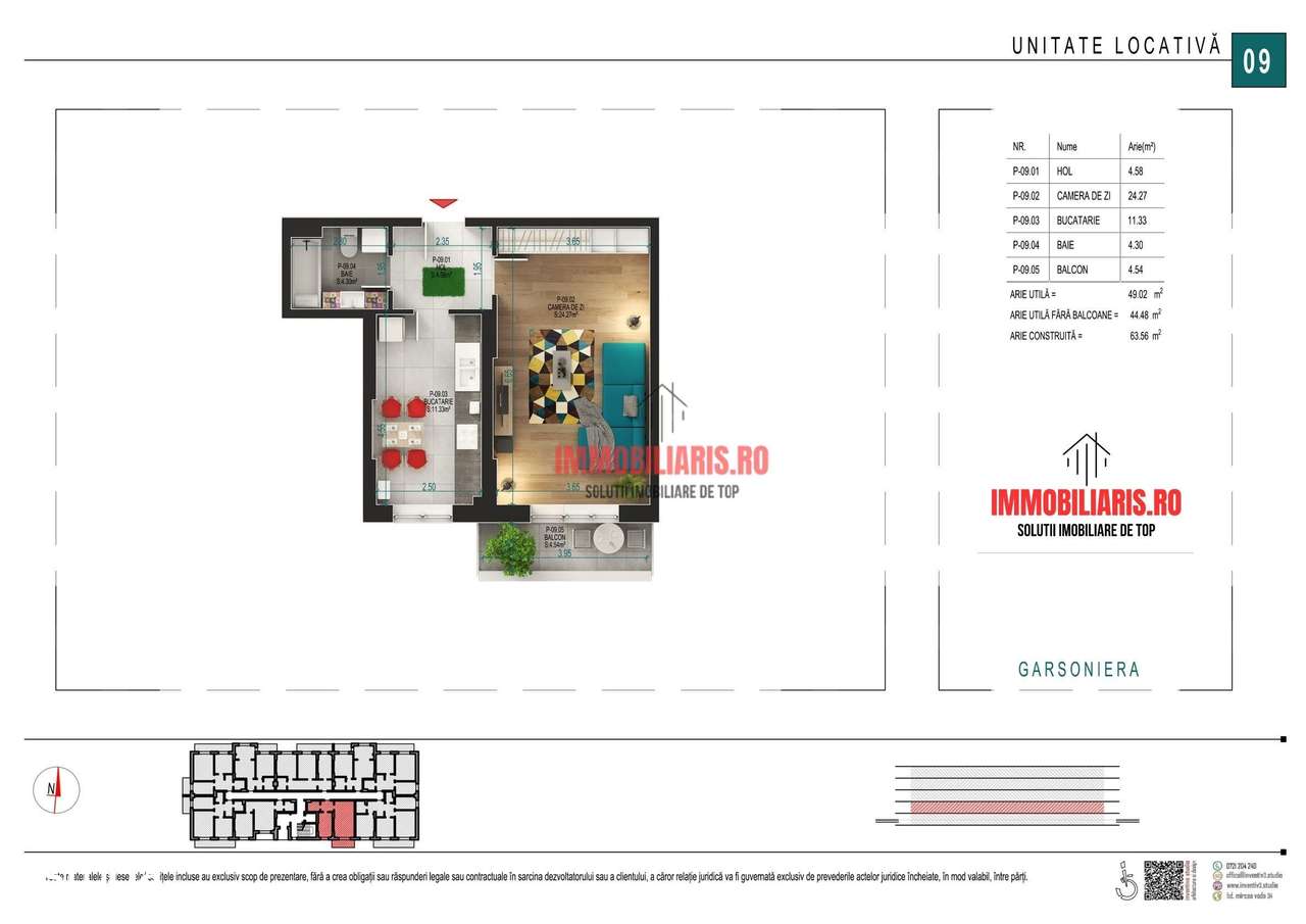 Garsoniera - 44 mp - Pallady