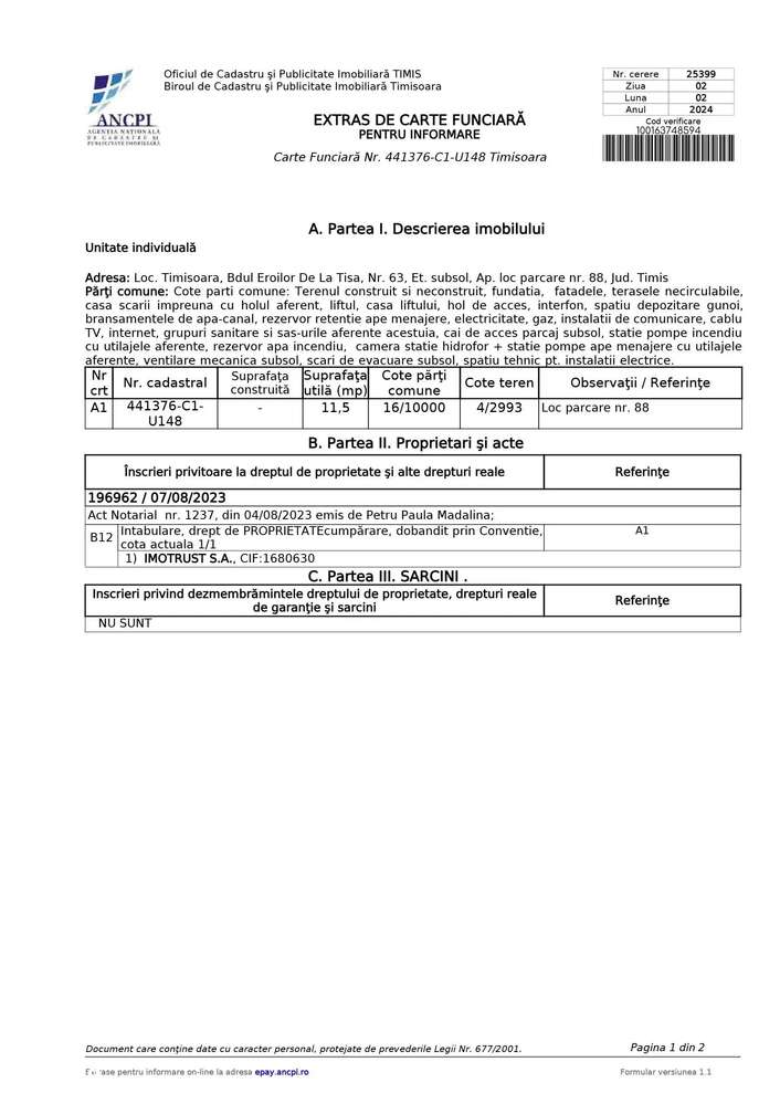 Loc de parcare subteran de vânzare Vivalia V3 zona complex studentesc