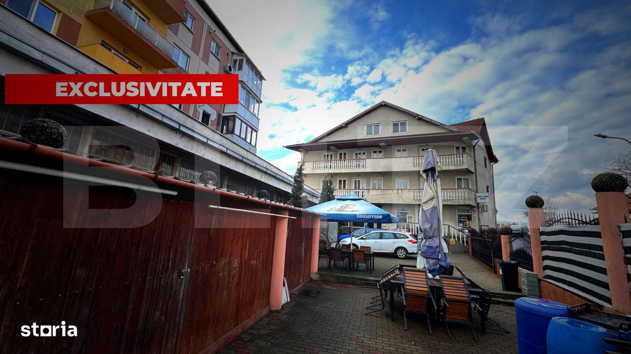 Spatiu comercial 2 corpuri, curte 500 mp si terasa 220 mp – zona Gar