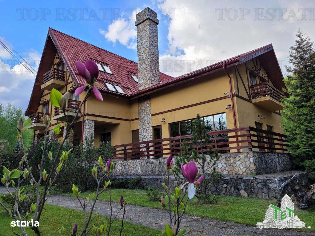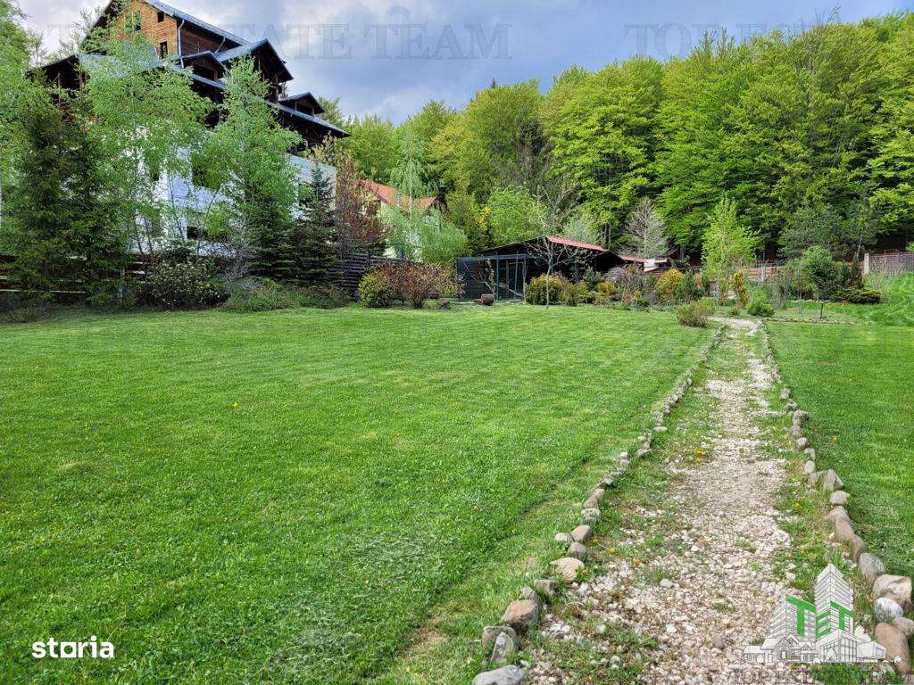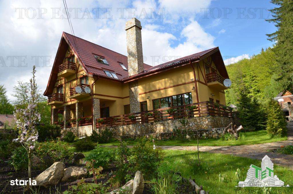 Pensiune de vanzare in Statiunea Cheia Construita in 2007 langa padure, pe un teren cu o suprafata de 3800mp, avand o deschidere de 45 ml, imprejmuit cu gard. Destinatia constructiei este pensiune (di...