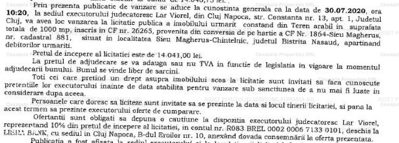 Teren extravilan- 2000 m², Crainimat-LICITATIE PUBLICA