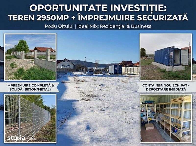 Proprietate 2950mp: Sosea DJ112, Imprejmuit + Container. Podu Oltului