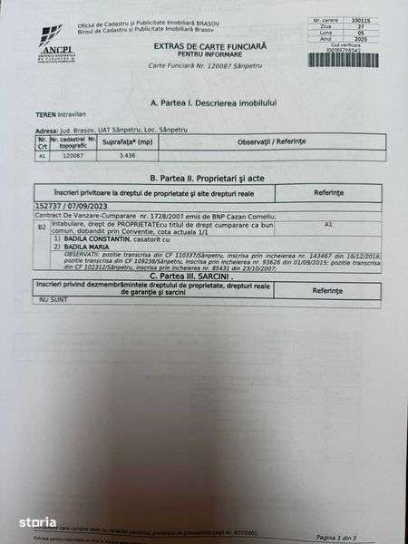 teren intravila 3436 mp sanpetru str sf. Andrei