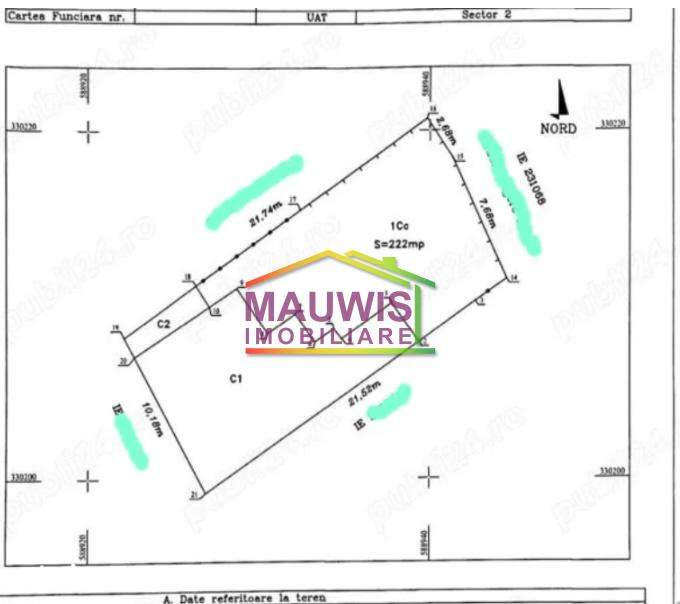 Vand teren in zona Ramuri Tei cu suprafata de 218 mp. Terenul are deschidere la doua strazi, 21. 7 la Ramuri Tei si 10,6 ml la cealalta strada.