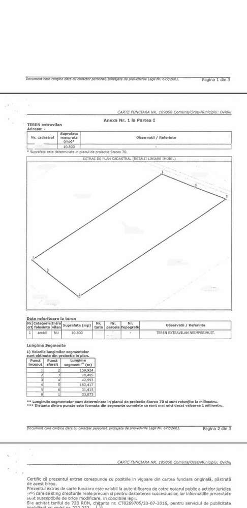 Teren intravilan 3000mp, deschidere 60ml, varianta Ovidu