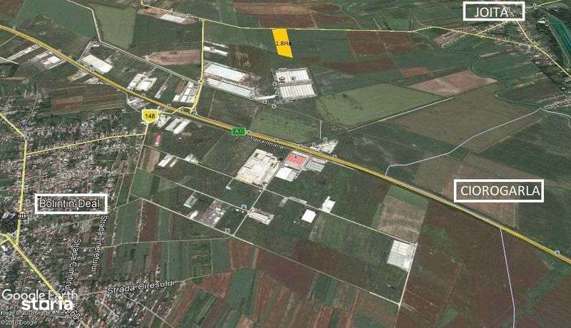 Teren intravilan 1 ha – Ciorogârla, deschidere directă la A1, viz-a-vi