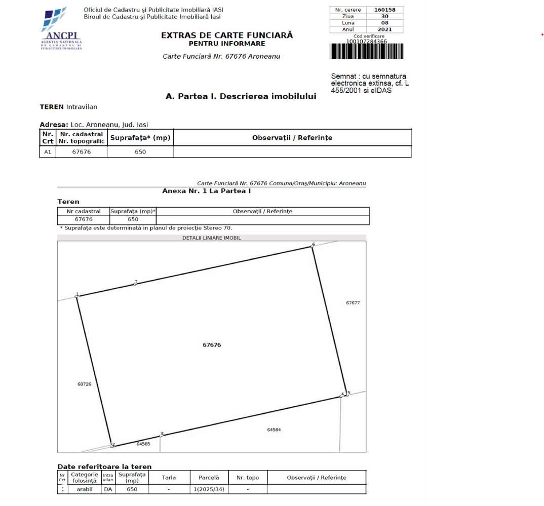 Teren Aroneanu 650mp Intravilan