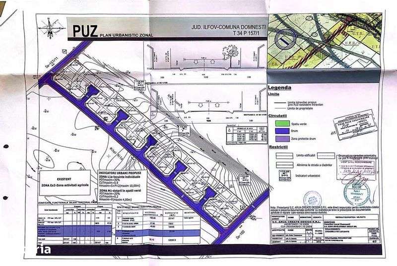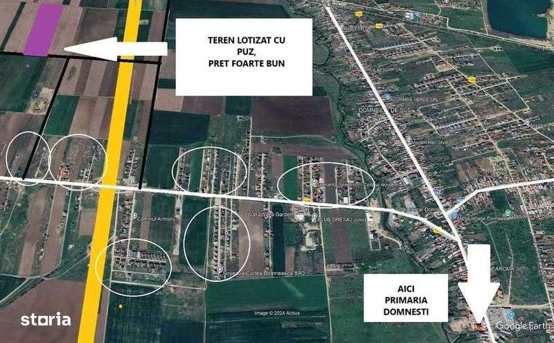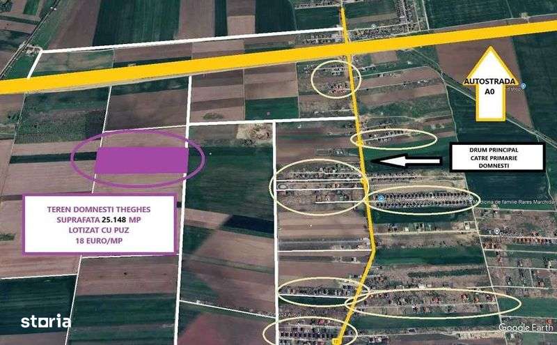 Proprietar - DOMNESTI - teren lotizat cu PUZ- 35 loturi - 18 euro/mp