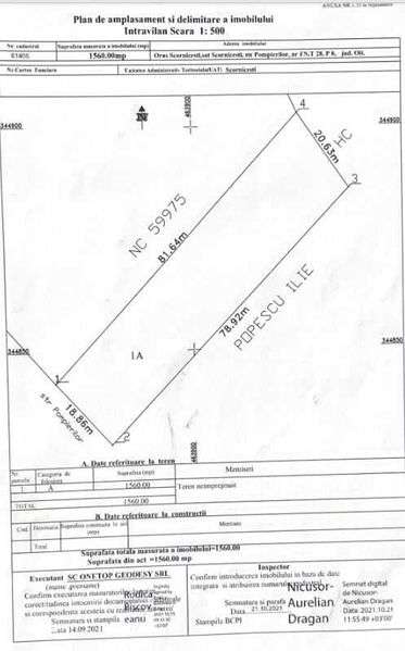 Teren intravilan 1838 mp, D=18,54m, str.Manastirii nr.7D, ultracentral