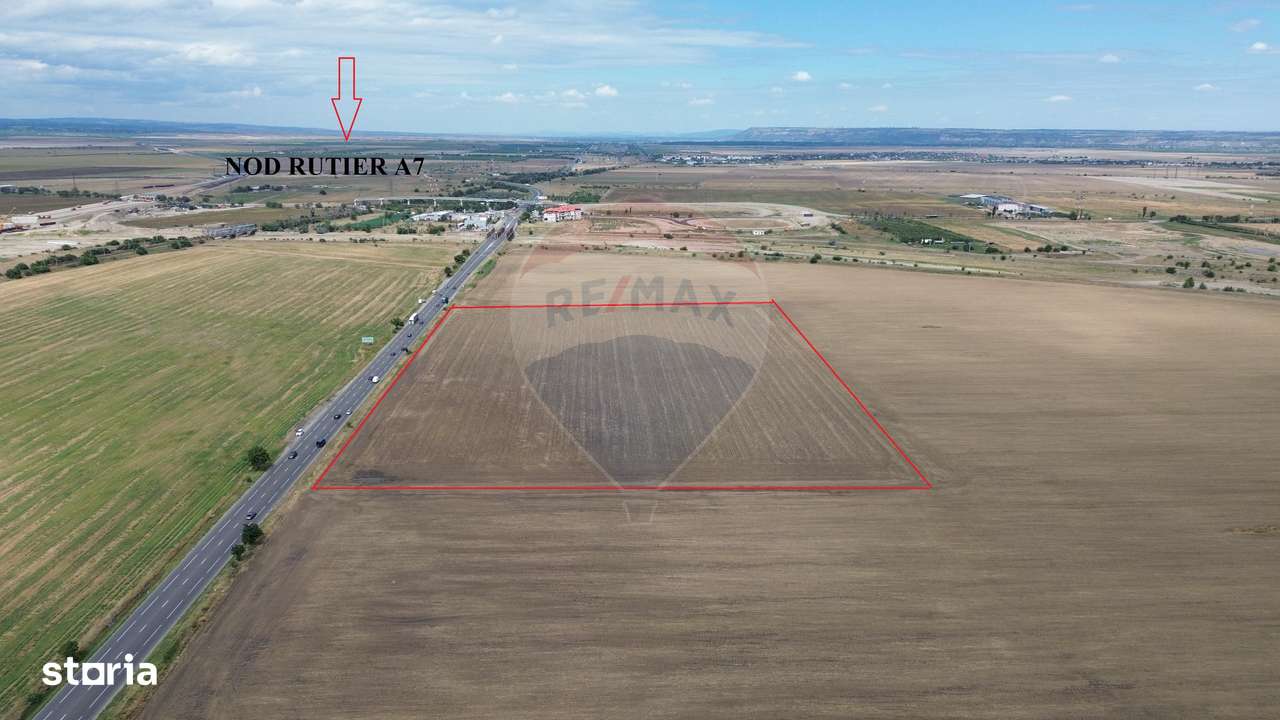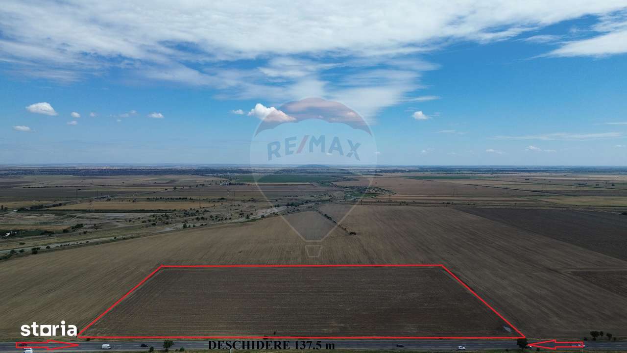Se oferă spre vânzare teren cu o suprafață de 27.500 mp, având deschidere de 137,5 metri la drumul european DN2 E85.